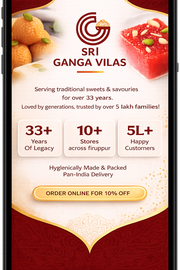 Freshly made sweets & savouries across the city. Visit your nearest Sri Ganga Vilas branch.
